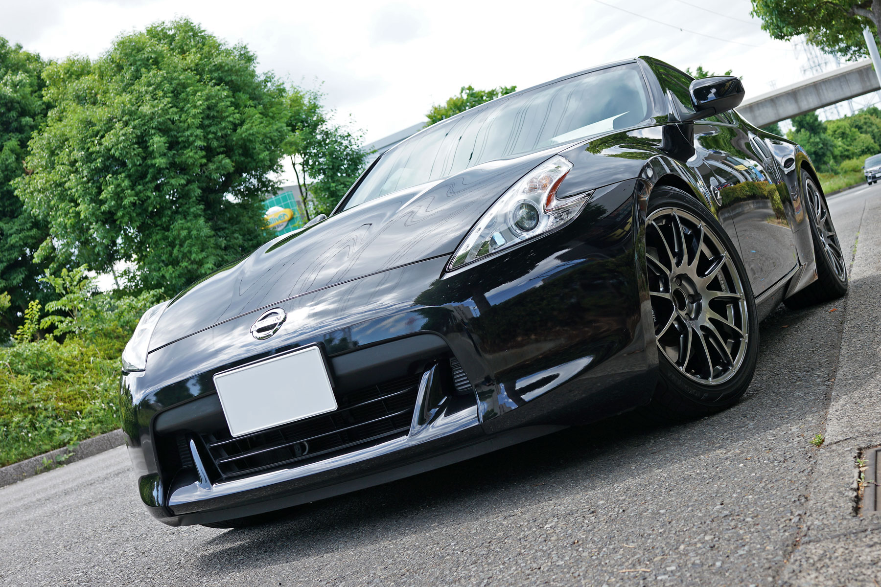 買取りしたZ34Ver.STが入庫いたしました。ワンオーナー、屋根付車庫保管、禁煙車で、緑整備センターさんのチタンマフラーにECM、アラゴスタ車高調などを装着しています。
