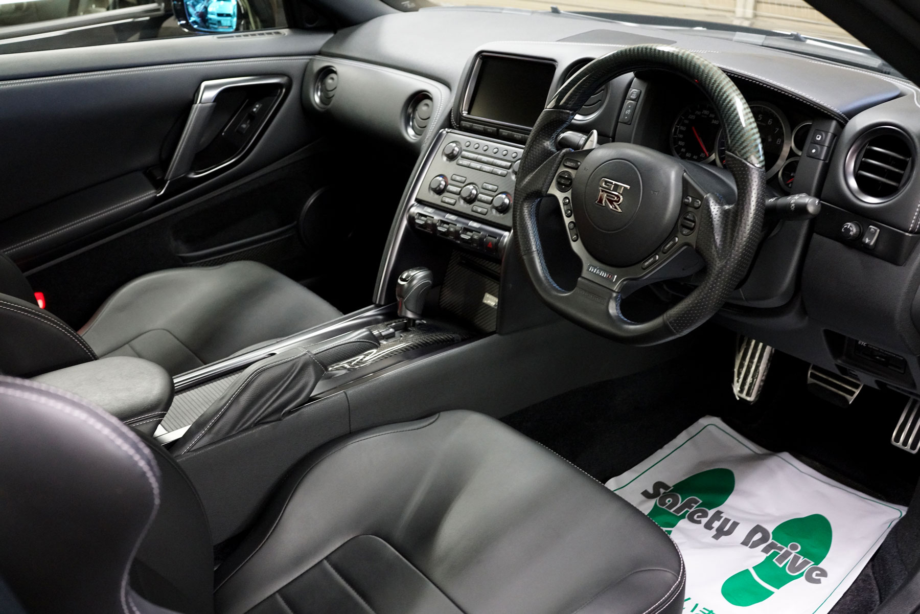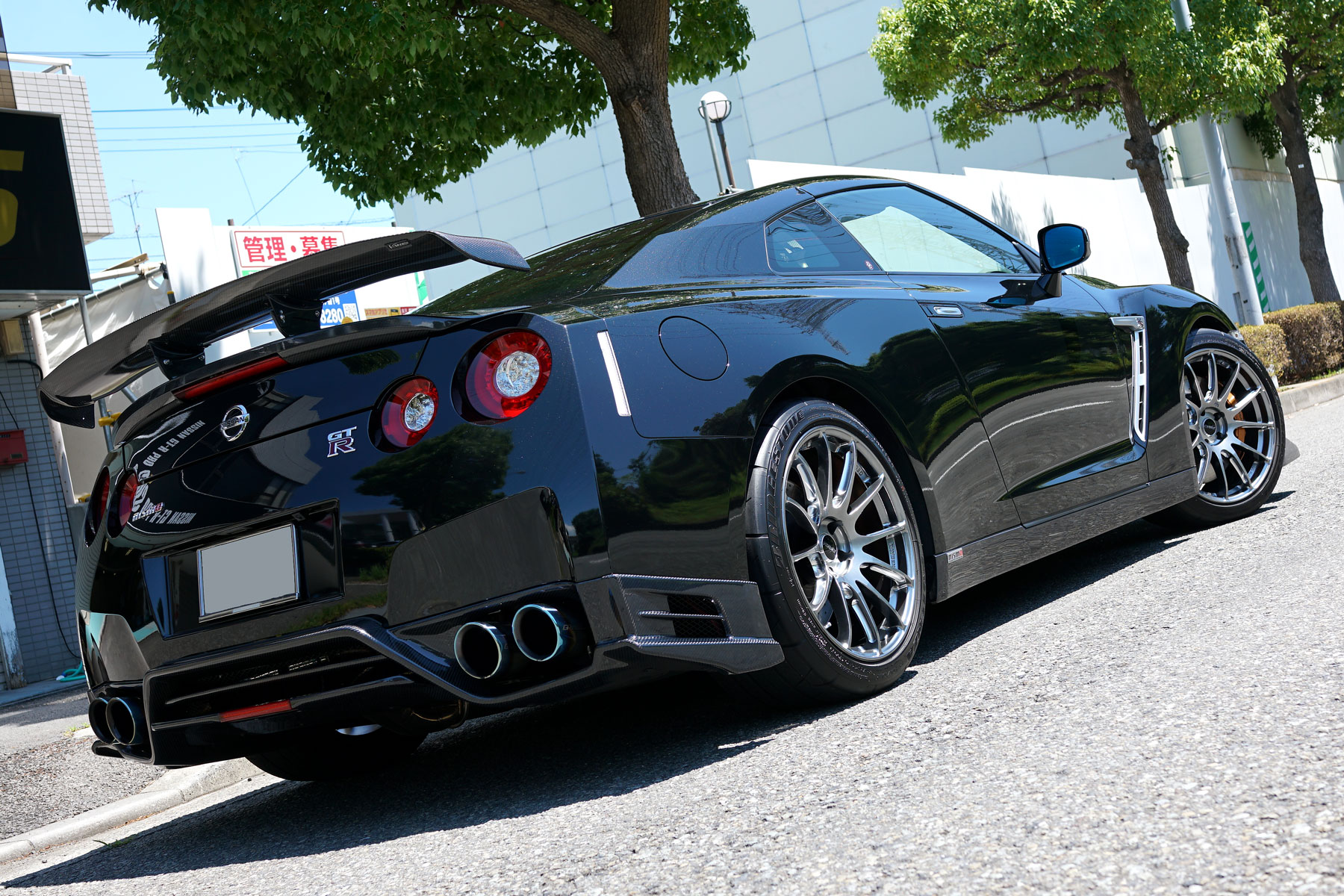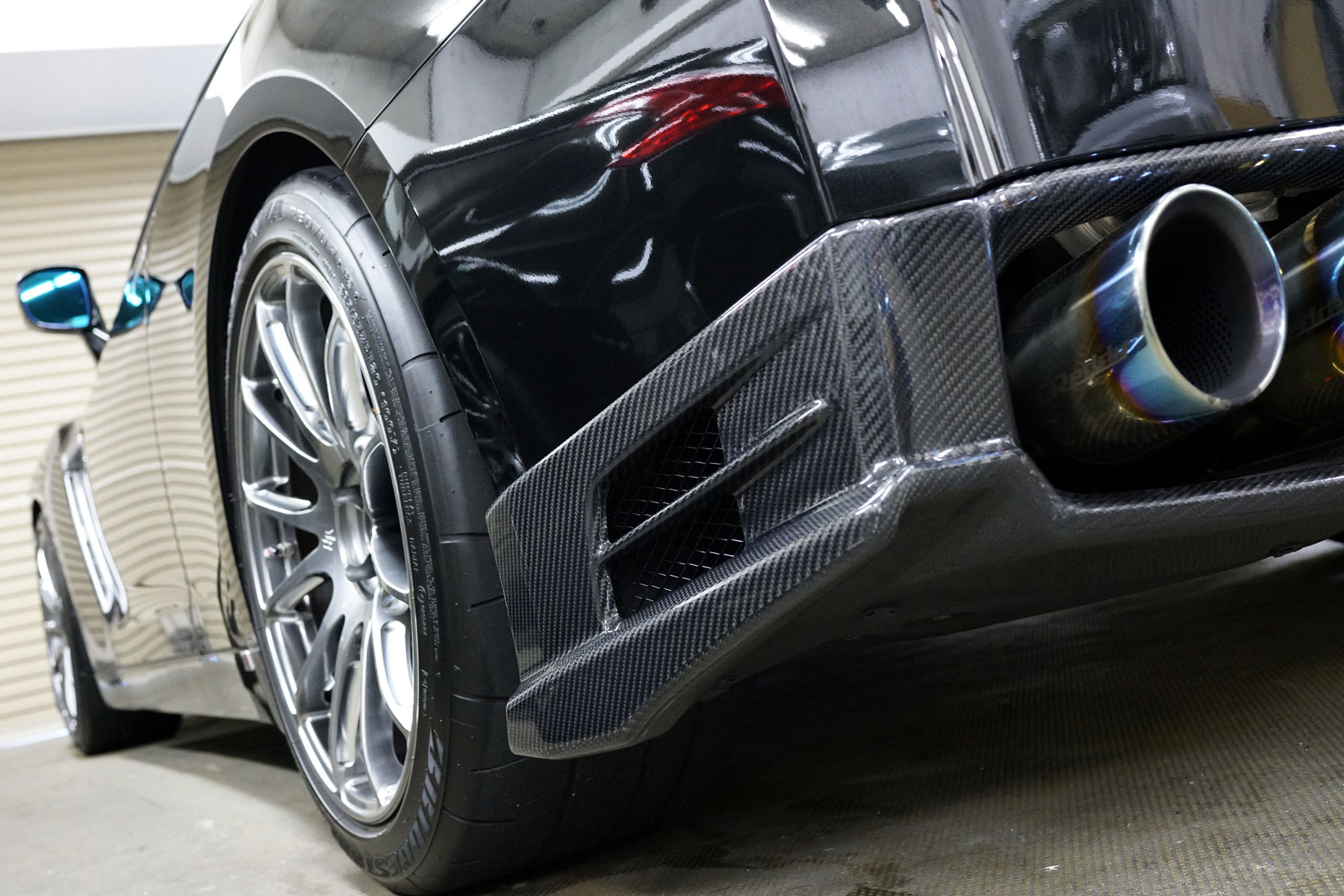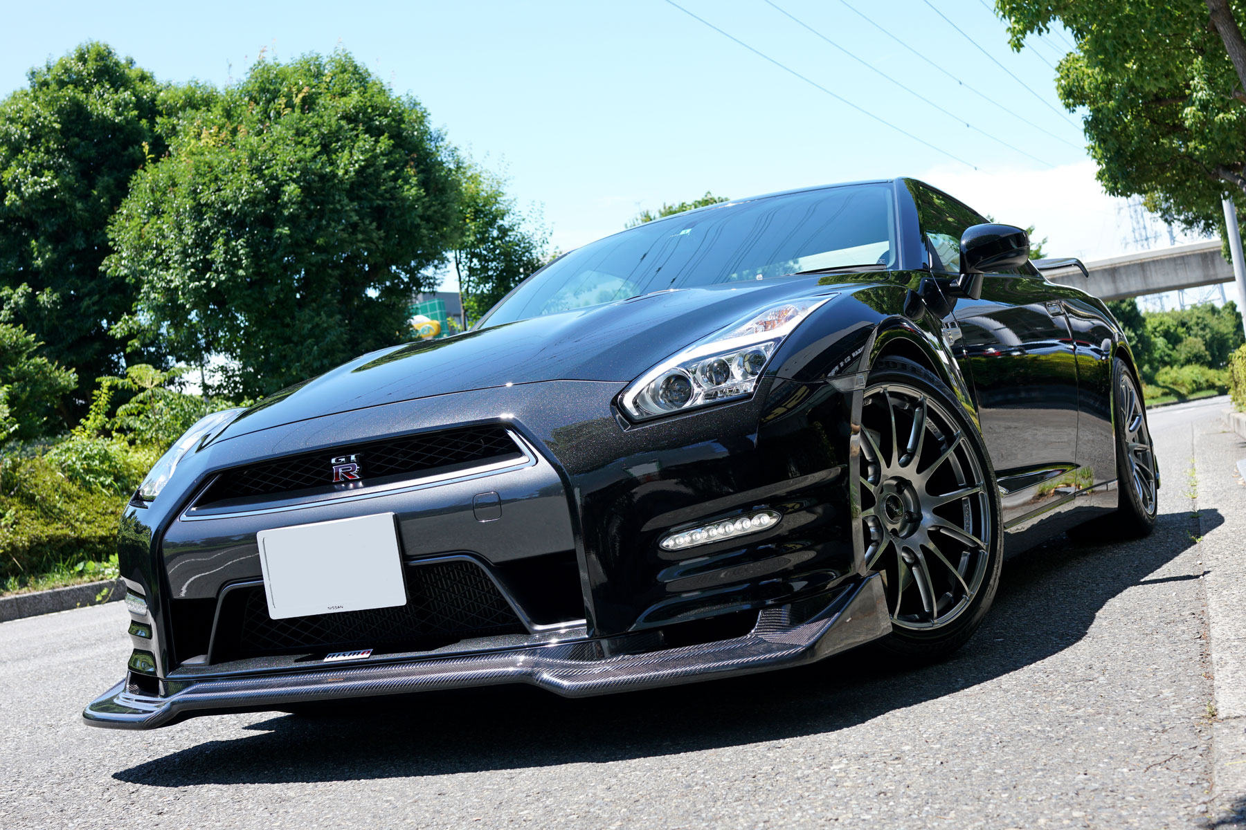 関西サービスさんでチューニングされた2013年モデルのR35GT-Rプレミアムエディションが入庫いたしました。トップシークレットのカーボンフロントディフューザー&カーボンリヤディフューザーにVARISカーボンリヤウィング、BRIDEバケットシート、関西サービスECMなどライトチューニングのお車です。イナズマLEDヘッドライトに変更されてます。
