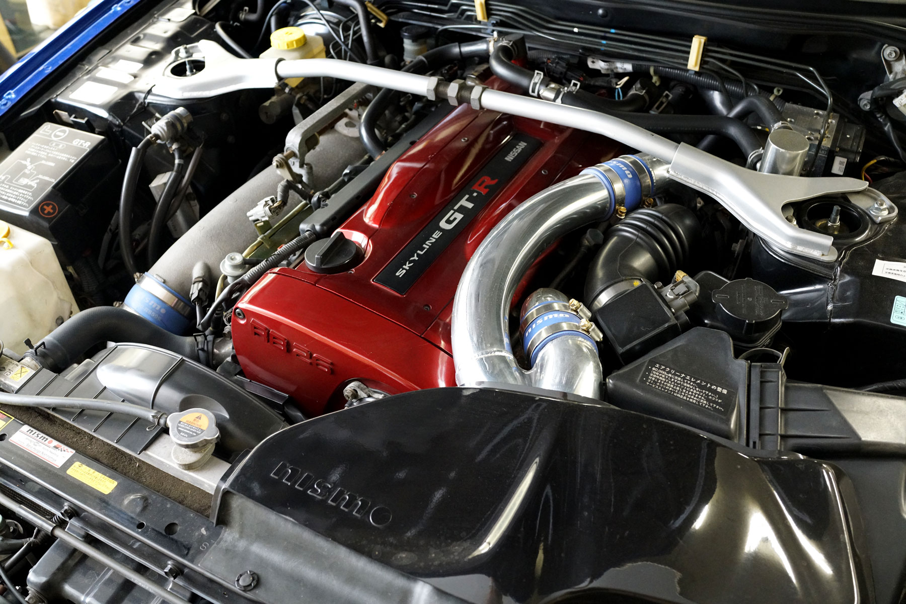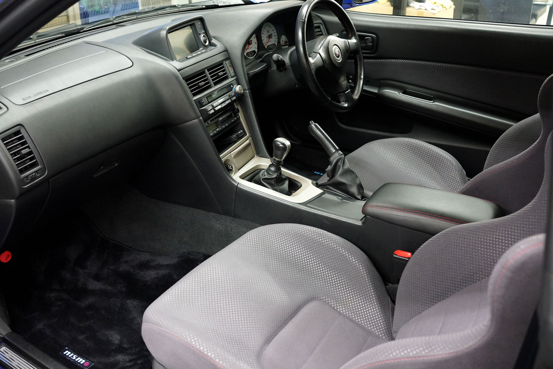 Vスペック用のフロントディフューザーとリヤカーボンディフューザーを装備したR34GT-R標準車が入庫いたしました。継続的に日産ディーラーで整備されたお車で、ニスモパドック千葉でスポーツリセッティングやNE-1マフラーの装着の他、シャーシリフレッシュも施されているお車です。