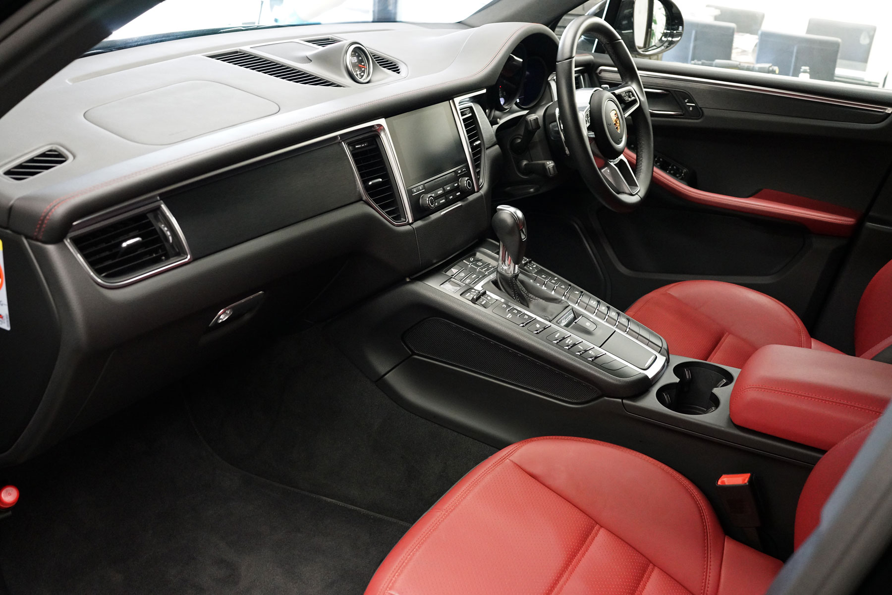 ポルシェ マカンGTSスポーツクロノPKGが入庫いたしました。正規ディーラー車で、パノラマルーフにマットブラック仕様のターボデザイン21インチアルミホイール、LEDヘッドライト、ガーネットレッドレザーシート&シートヒーターなどオプション多数のお車です。