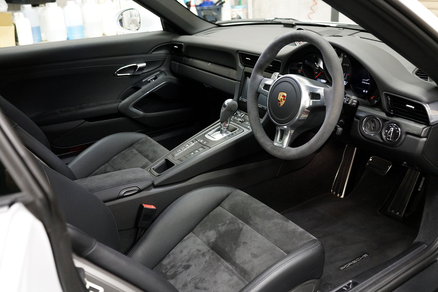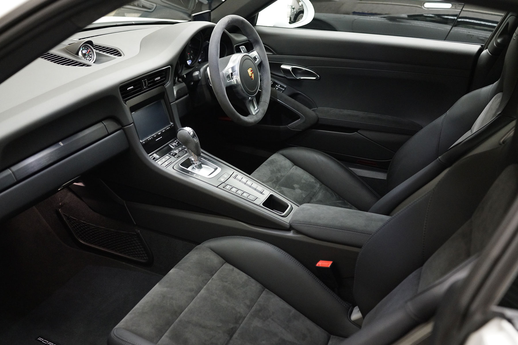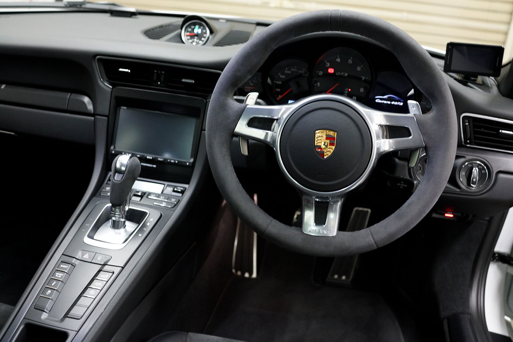 買取りしたNA最終モデルのポルシェ911カレラ4GTS PDKが入庫いたしました。正規ディーラー車&右ハンドルで、標準装備のスポーツクロノ&スポーツエグゾースト、センターロック式20インチアルミホイールやアルカンターラインテリアなど豪華な装備の他、プライバシーガラスなどのオプションも装備しています。