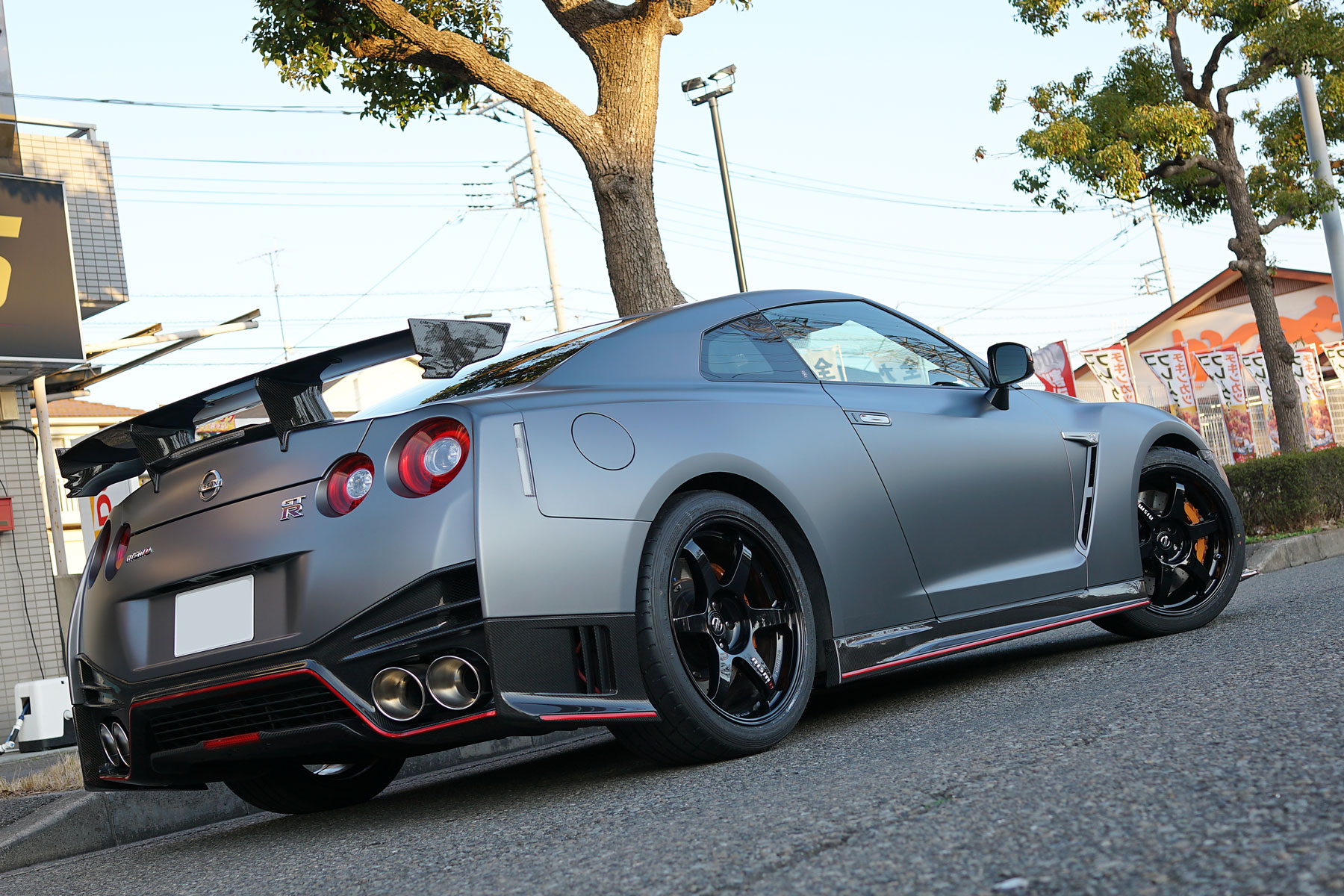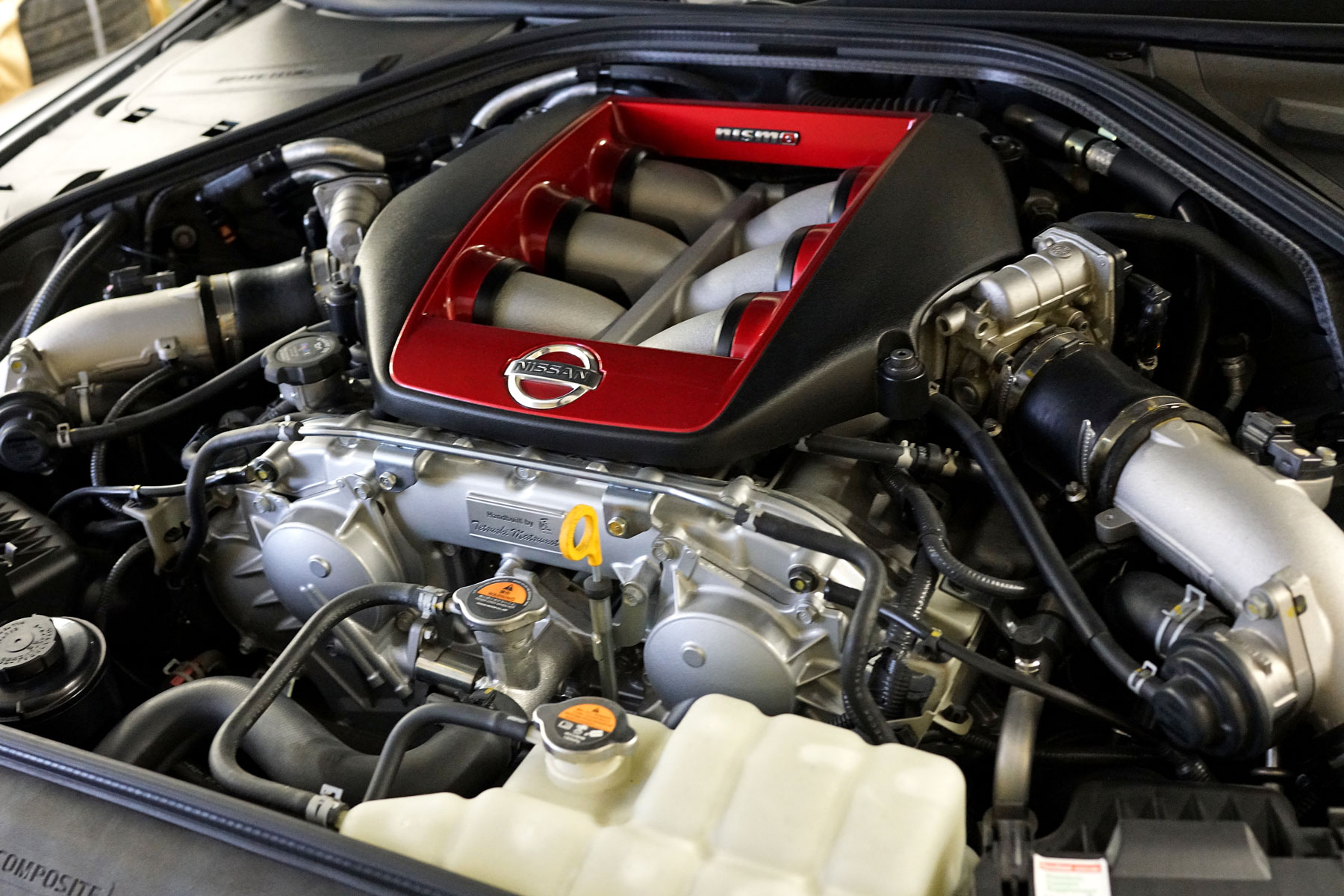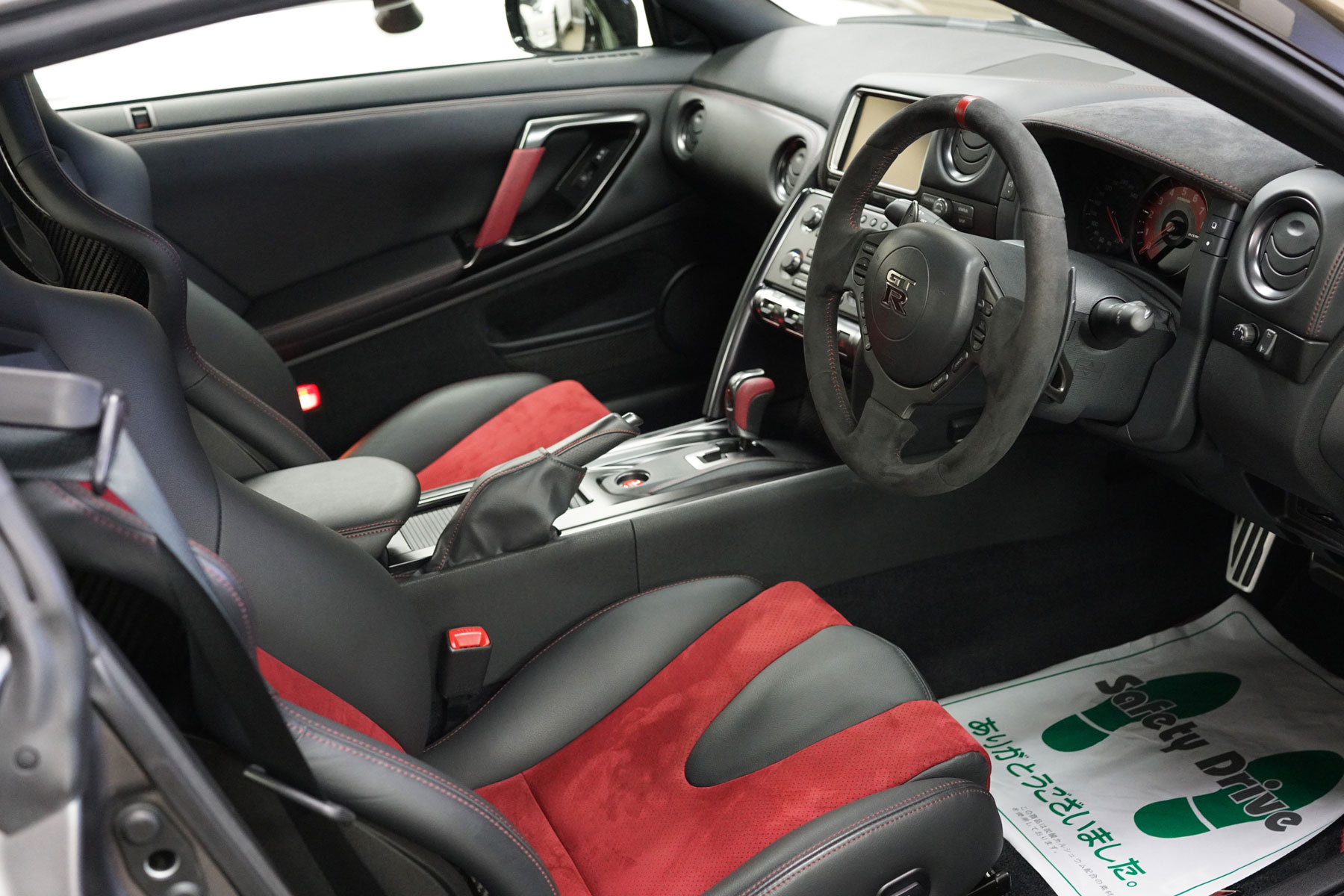 買取りした2015年モデルのR35GT-R NISMOが入庫いたしました。ワンオーナー、ガレージ保管、禁煙車で、車体色はNISMO専用特別塗装色のダークマットグレーになります。サッチャム防盗システムにNISMO専用フロアマット、ドライブレコーダー&レーダー探知機を装備しており、入庫前に日産にて車検取得およびタイヤ4本を新品に交換済。