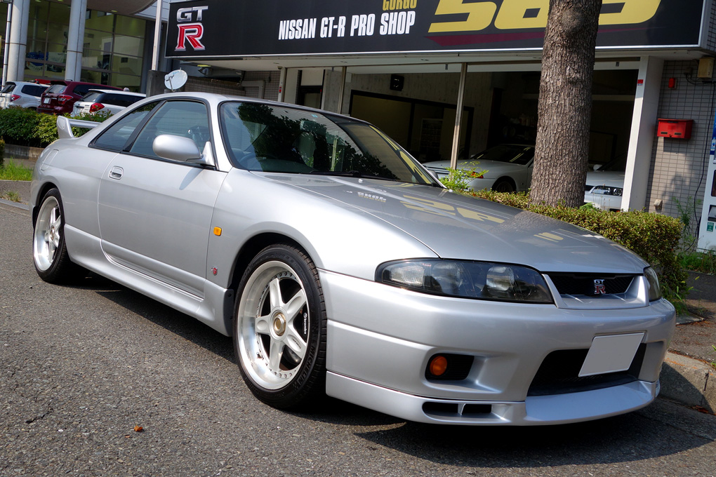 前期型Vスペックの禁煙車です。VOLK CV PRO18インチホイールにテイン車高調を組み合わせ、クラッチは平成26年3月末にATSメタルクラッチキット、タイヤ4本を新品に交換したばかりで、緑整備センターさんで整備をしていたお車です。ETC付。