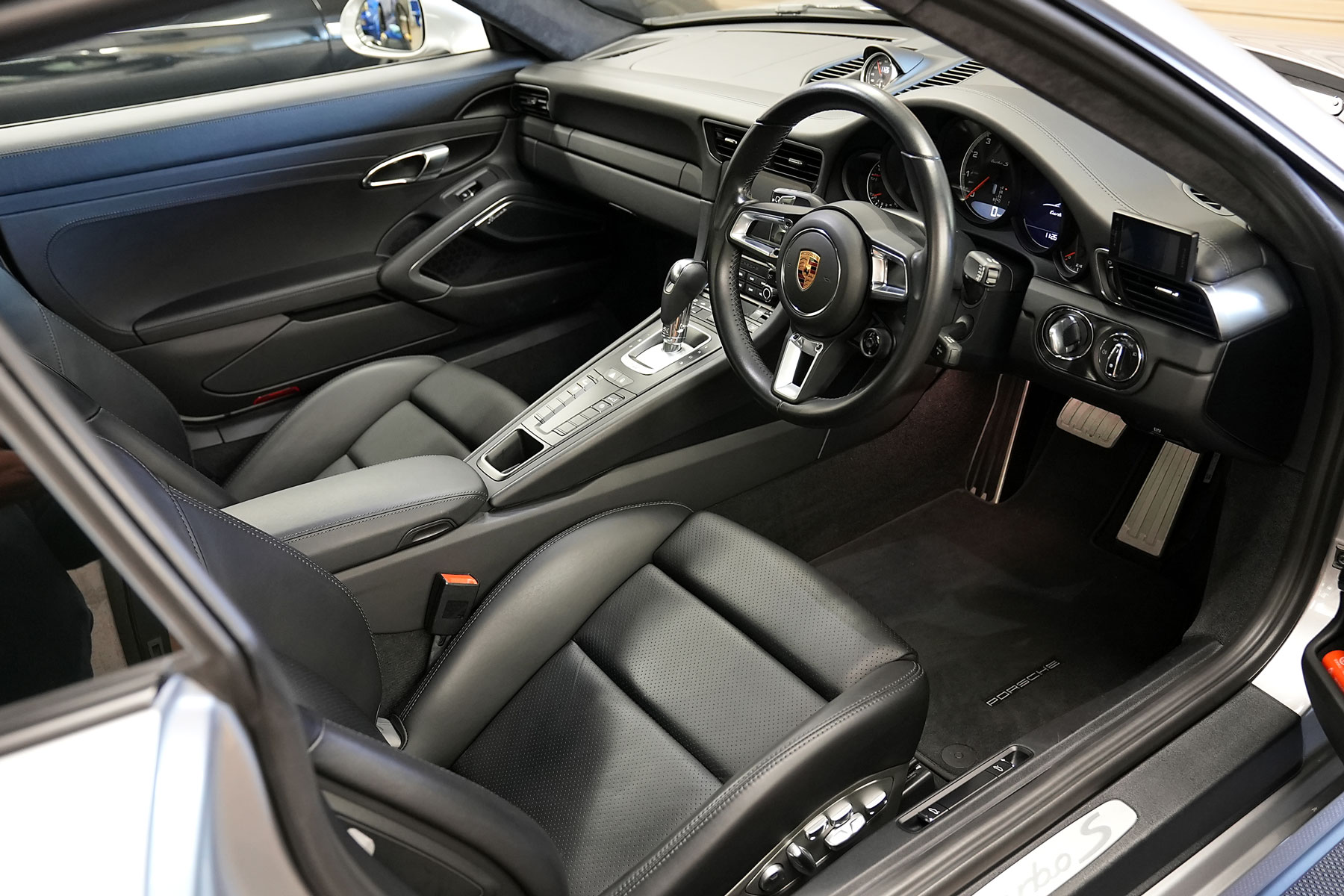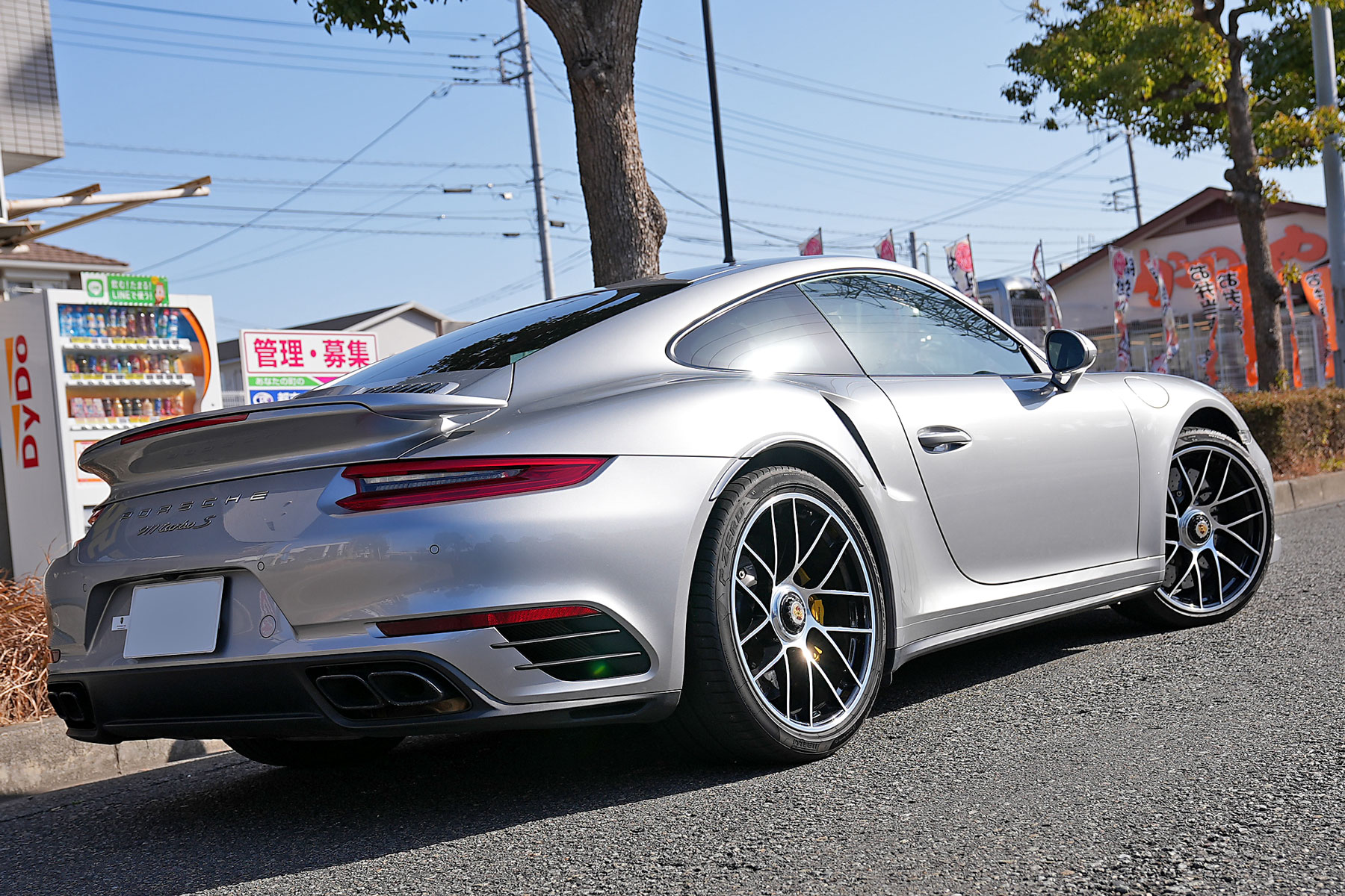 買取りしたポルシェ911.2ターボSが入庫いたしました。標準装備のPCCB&スポーツクロノPKG、アダプティブスポーツシート・プラスにブルメスターハイエンド・サラウンドサウンドシステム、エントリー&ドライブ、シートヒーター、プライバシーガラスなどを装備しています。タイヤ4本交換と車検を取得してから納車いたします。