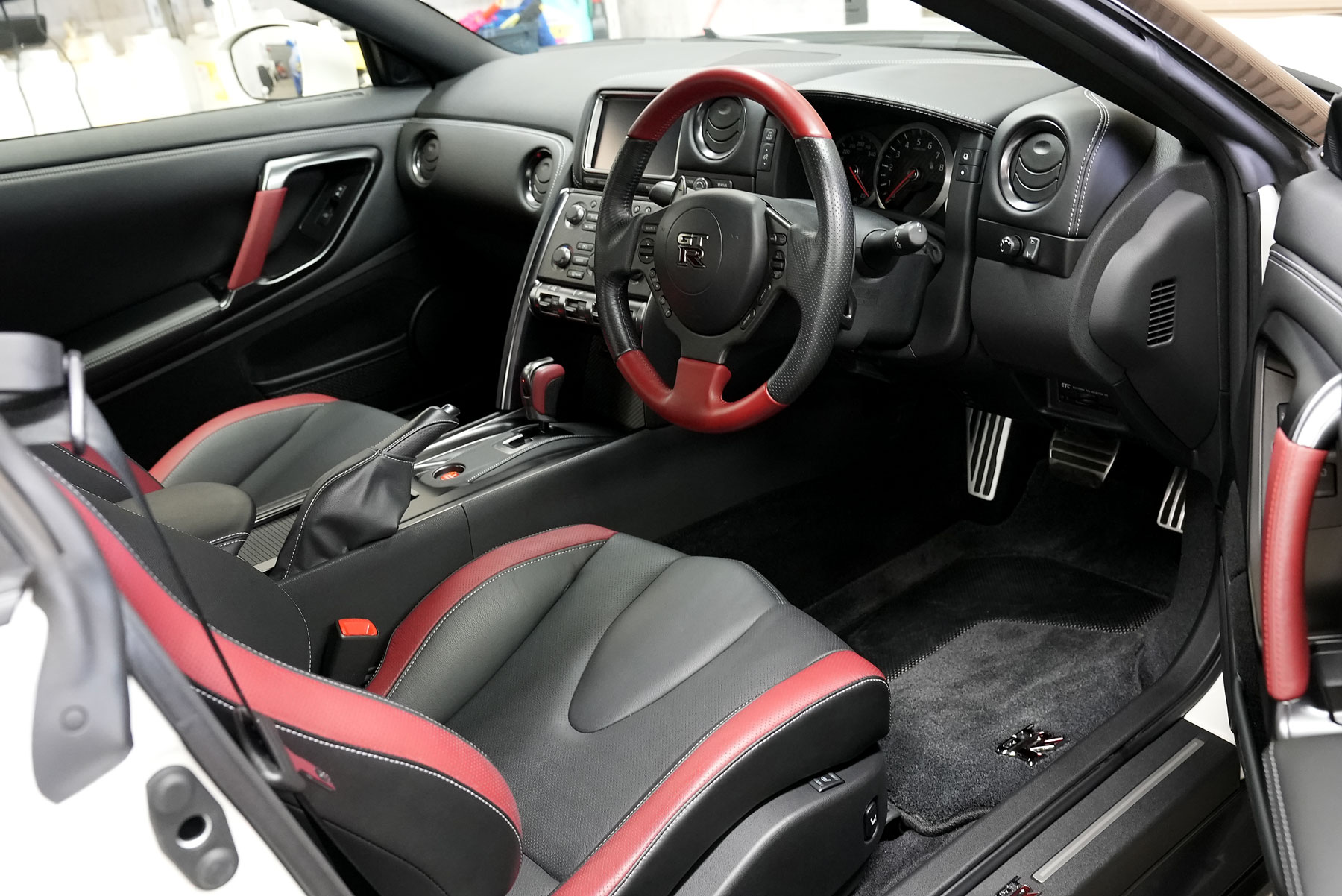 買取りした2015年モデルのR35GT-Rブラックエディションが入庫いたしました。ワンオーナー、ガレージ保管、禁煙車で、nismoスポーツリセッティングを装備しています。昨年末に車検を取得されたばかりで、フロントタイヤ2本も新品に交換されています。