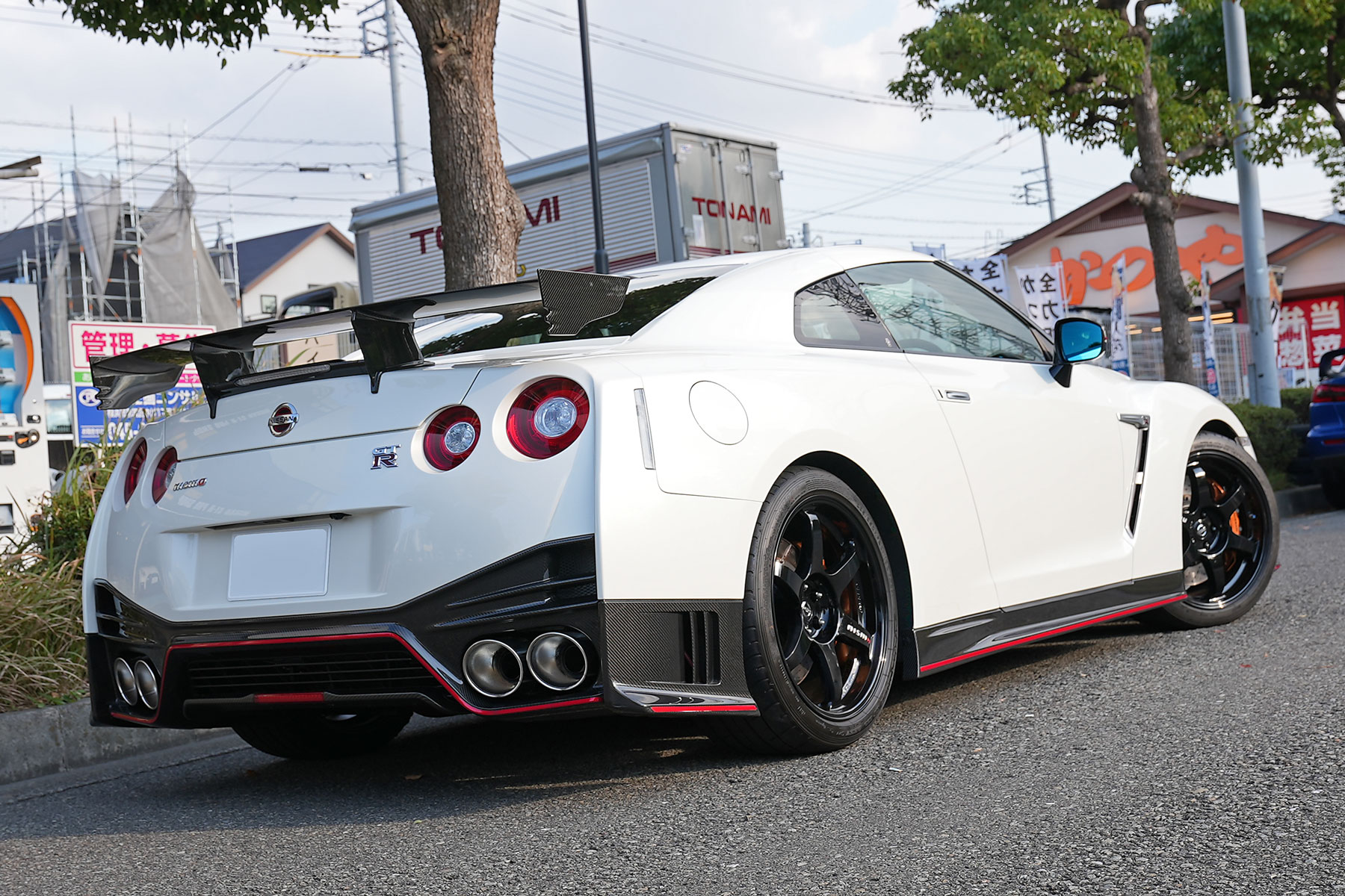 買取りした2015年モデルのR35GT-R NISMOが入庫いたしました。ガレージ保管、禁煙車で、nismoスポーツリセッティングに、カーボンNACAダクト&ミラーカバー&ピラーカバー、nismoブルーミラーを装備しています。