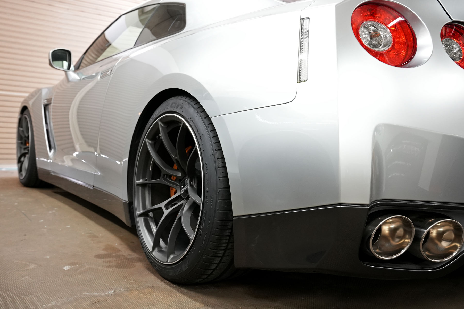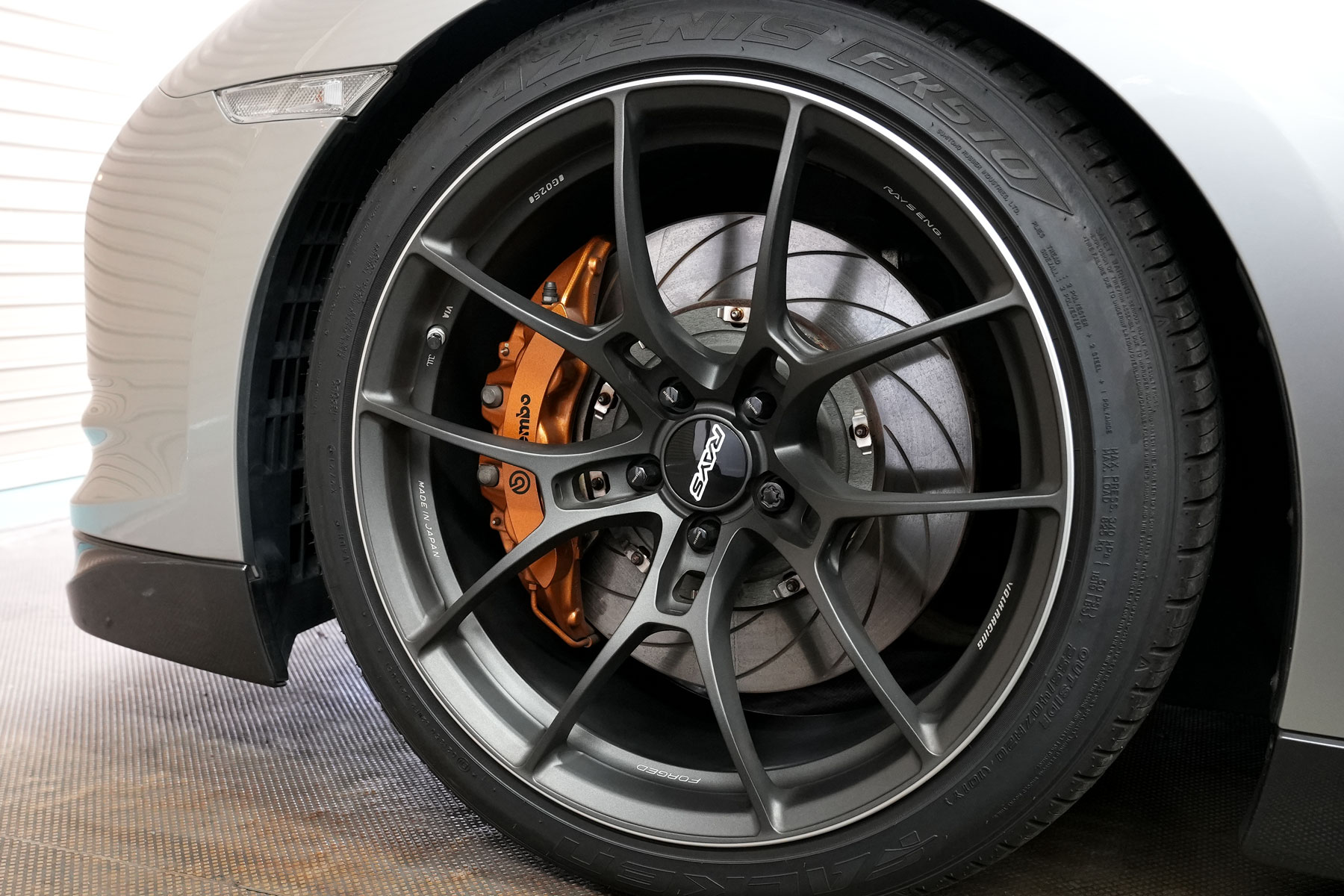 買取りしたR35GT-Rプレミアムエディションが入庫いたしました。アップラインのMY20仕様ECM&TCMにNEKOの車高調整式スプリングロアシートとミッション対策が施されています。その他、DIXELのブレーキローター&ブレーキパッドに交換され、ホイールはRAYS製のG025を装着しています。車検取得後に納車いたします。