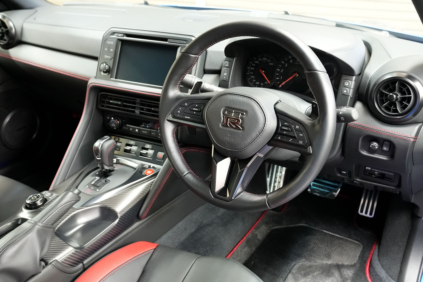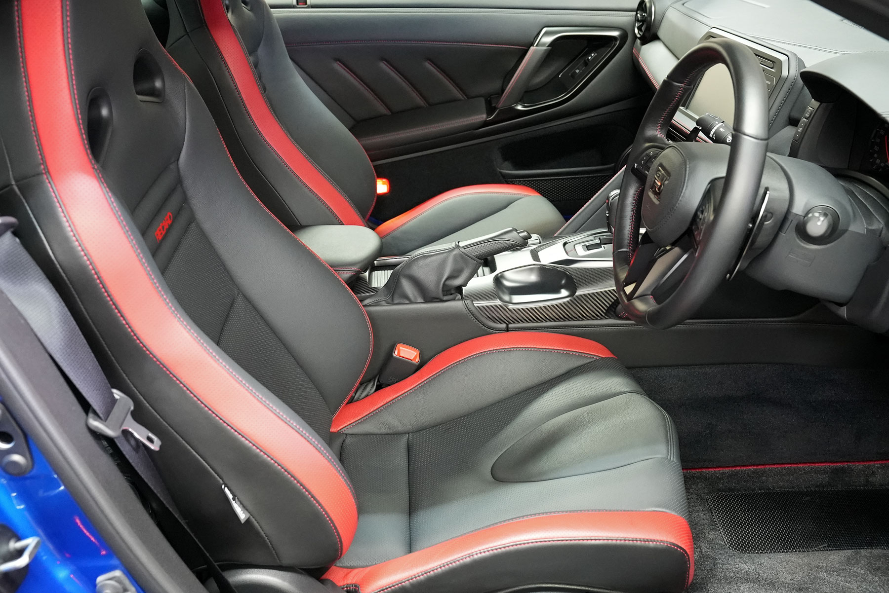 2024年モデルのR35GT-Rブラックエディションです。ワンオーナー、ガレージ保管、禁煙車、SRSサイドエアバッグ、nismo用フロアマット、ドラレコを装備しています。