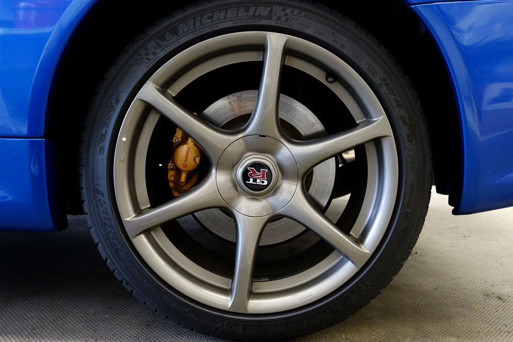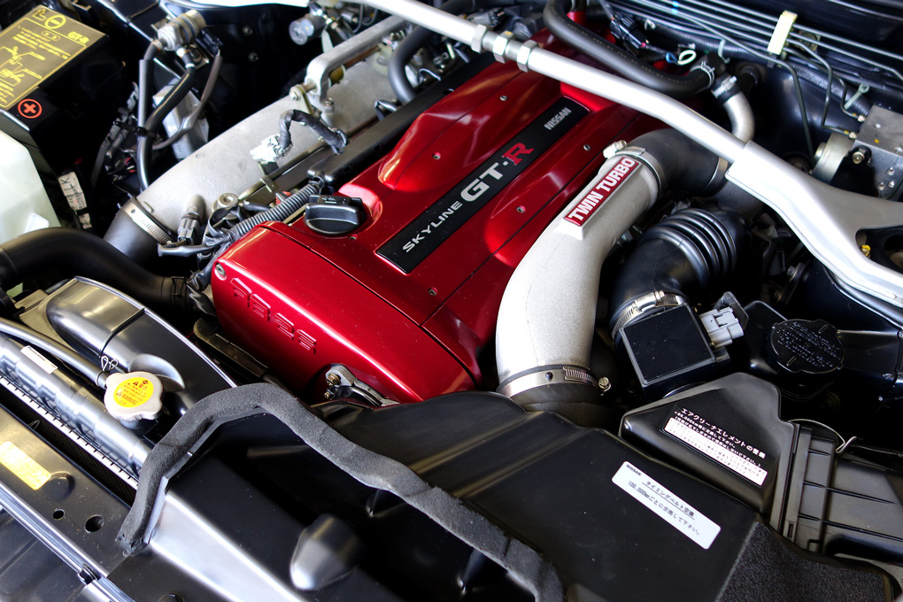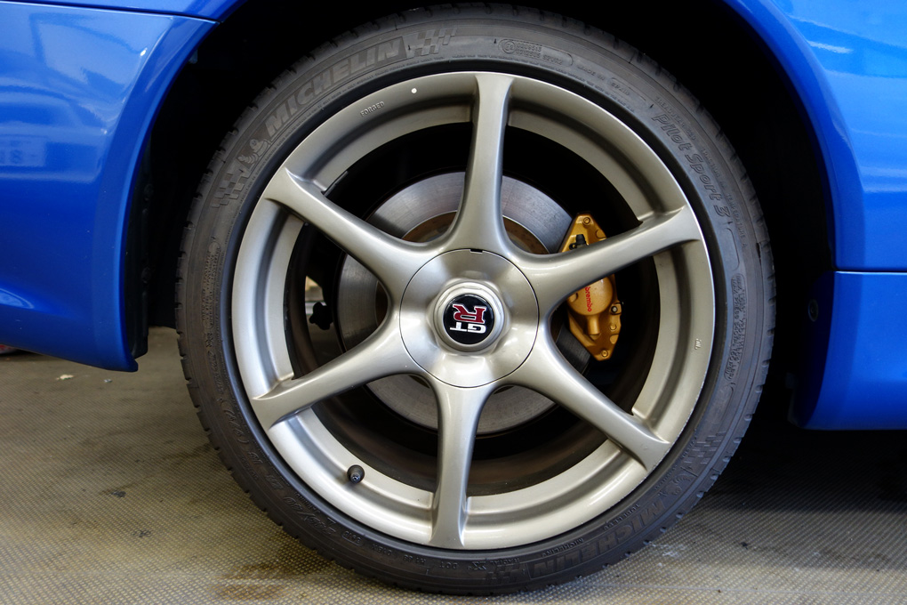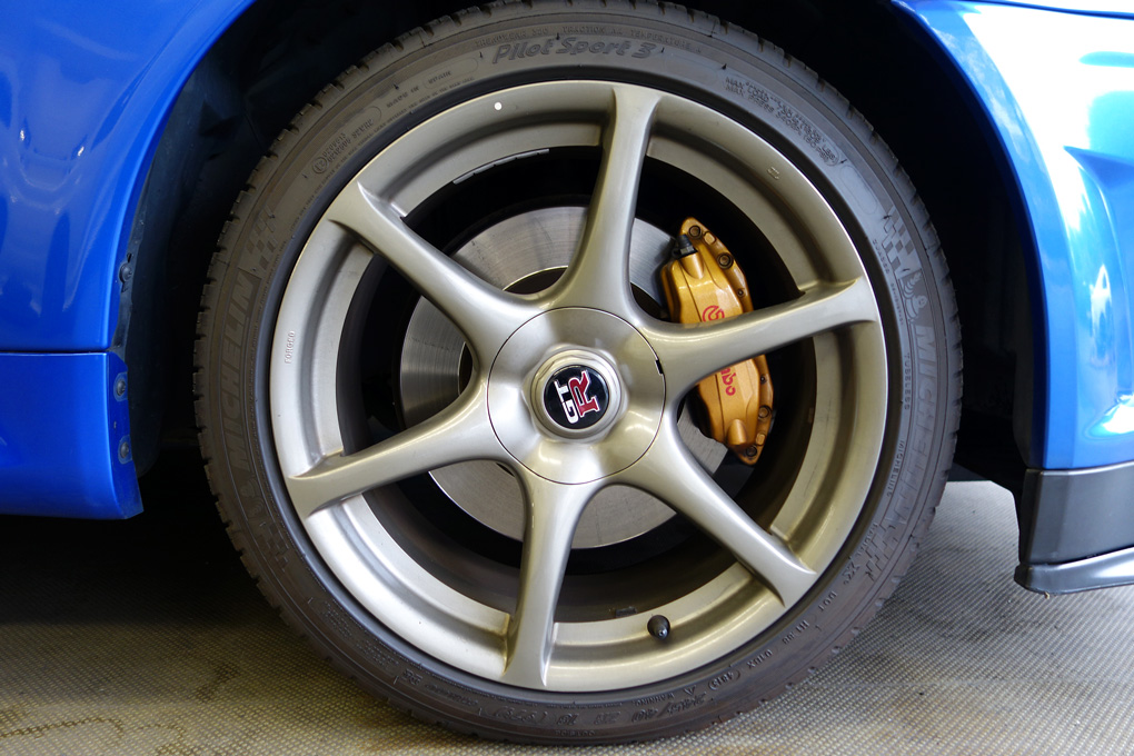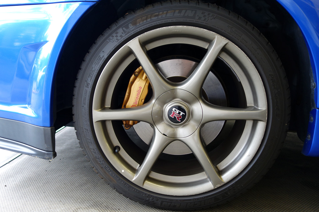 神奈川県で買取りしたR34GT-R STDモデルの後期型が入庫いたしました。ワンオーナー、ガレージ保管、Pガラス、VスペックⅡ用フロントディフューザー付でHKSマフラー以外はノーマルになり、内装はHDDナビとETC、GPSレーダー探知機、NISMOシフトノブが装着されています。故障の多いMFDの液晶を新品に交換して納車いたします。車検は昨年10月に取得したばかりで平成28年10月まで残っています。定期的に日産ディーラーにて点検整備されていたお車です。