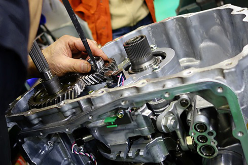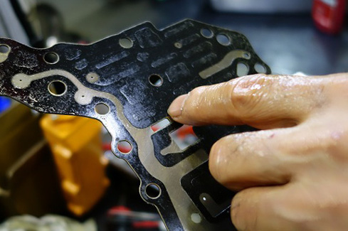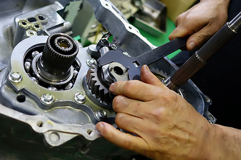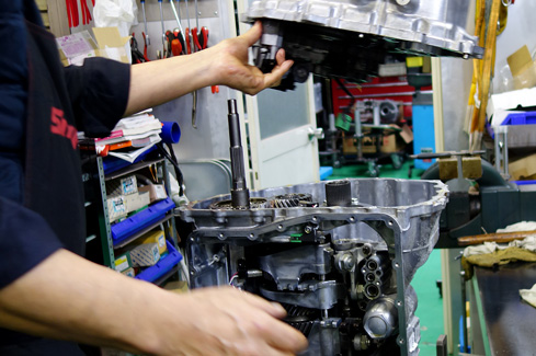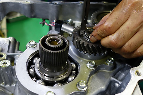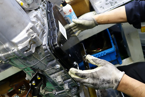 一通りの対策メニューを施したら、トランスミッションを元通りに復元します。接合部に液状ガスケットを塗布して組み立てます。