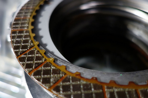 GT-Rのトラブルで、最初に発生したのがクラッチに起因するトラブルです。奇数段、もしくは偶数段側のクラッチにトラブルが発生しシフトできなくなる現象です。その原因はクラッチディスクを押し付ける役目のピストン部分のオイルシール破損です。写真のようにゴムの一部が欠けてしまうことで、本来ピストンを押すための油圧がかからなくなってしまうのです。